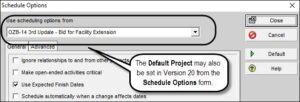 P6 V20 Setting Default Project Changes